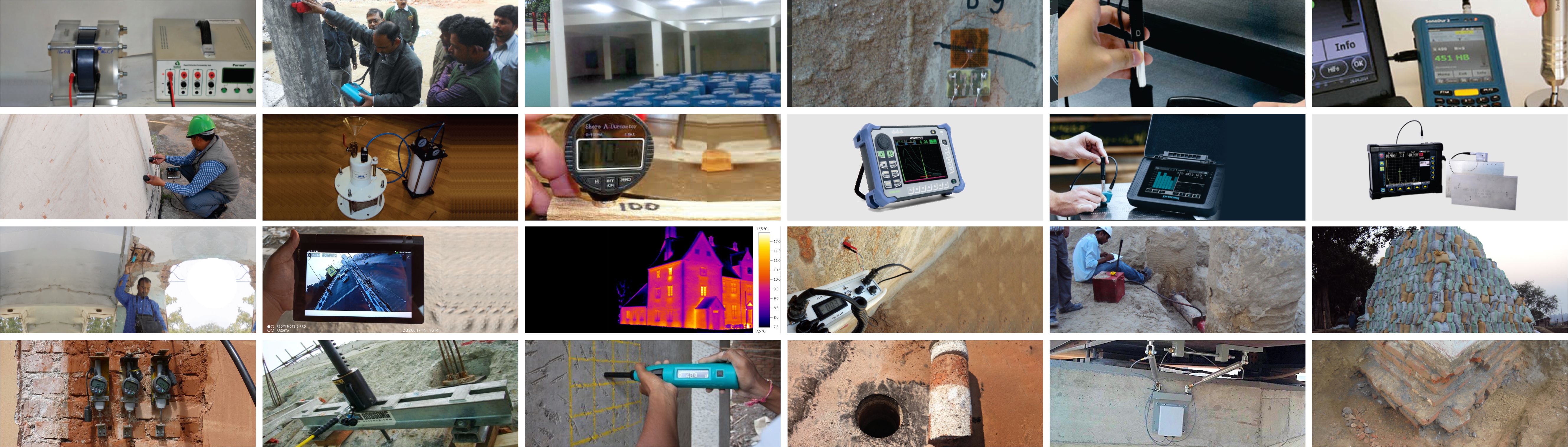 Fire Damaged Assessment, Fire Profiling by DTA & TGA, Comparative residual strength loss analysis between fire Damaged & Undamaged section, Temperature Leakage and Energy Efficiency Detection, Quality Audit of Construction (Design Data/In-Situ materials, Vertical Eccentricity & Alignment), Durability Analysis along with Corrosion-Crack Pattern-Depth Assessment, Crack Pattern Measurement, Tensiometer, Crack Till-Tale- Crack Scale, Traffic Volume Survey, Light Weight Deflectometer for Runway and Approach Road RE Wall lateral capacity Assessment, Bearing Condition and Overlay